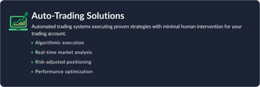 Professional trading account management built to maximize returns while actively managing risk.