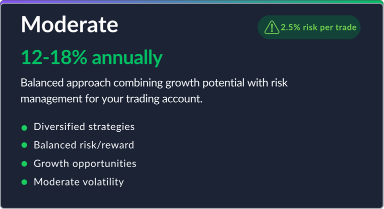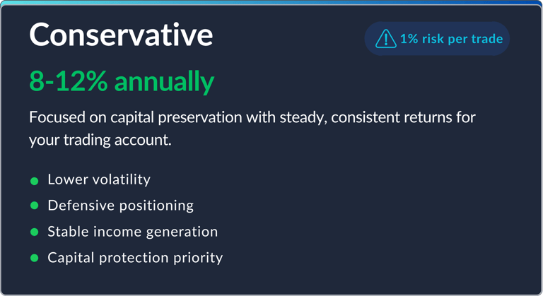 Comprehensive trading account management solutions tailored to your risk profile and financial goals, powered by cutting-edge technology and proven methodologies.