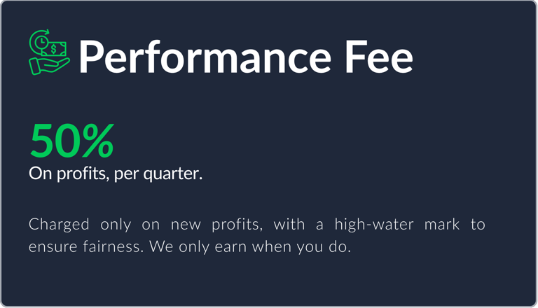 Our fees are straightforward, ensuring alignment with your trading account's success.
